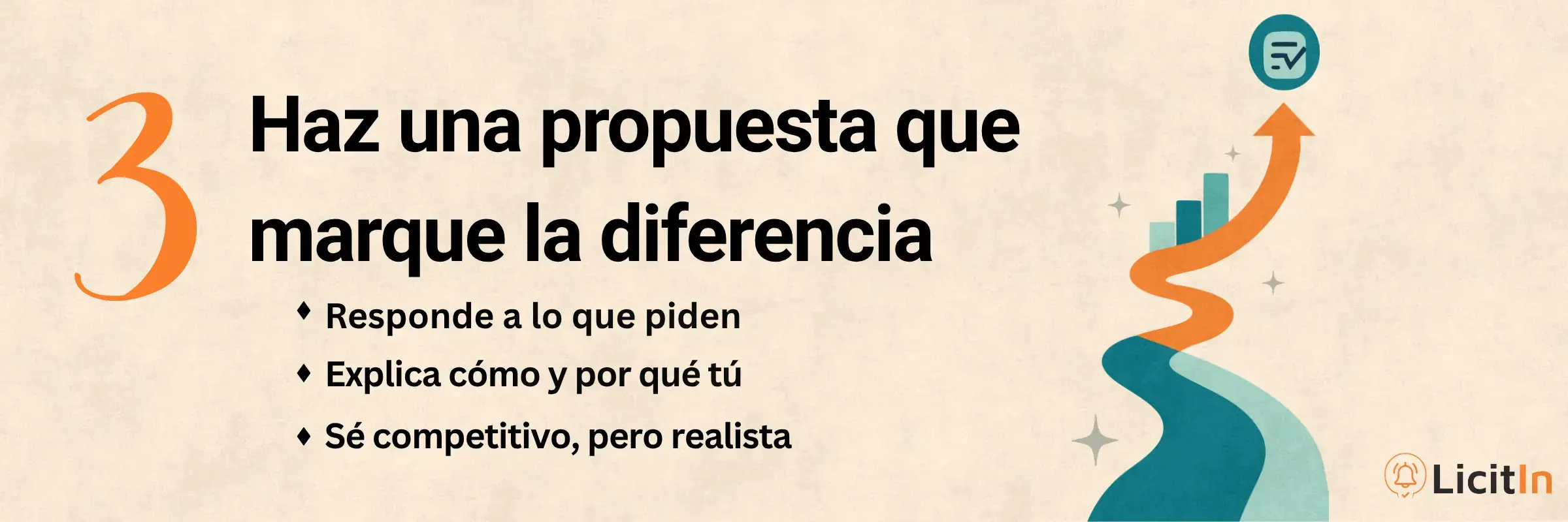 En cambio, si se valora más la propuesta técnica (equipo, metodología, innovación…), puedes destacar aunque no seas el más económico.